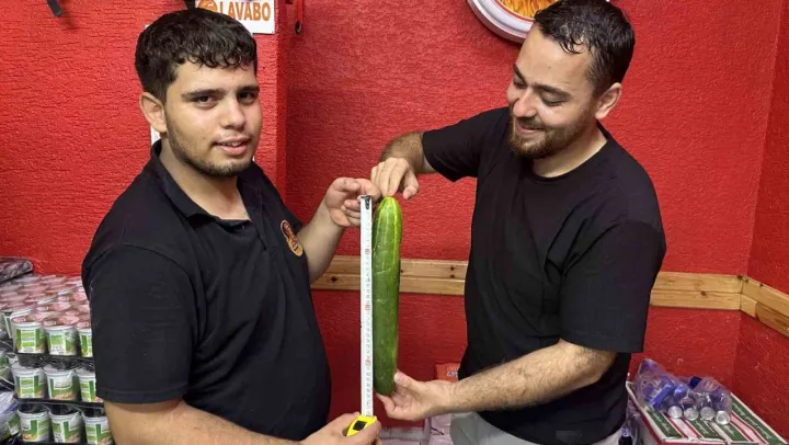 Muratlı ilçesinde bir işletmenin bahçesinde yetişen 37 santimetre uzunluğundaki salatalık, ilçe sakinlerinin dikkatini çekiyor. Organik gübre ile yetiştirilen salatalık, kısa sürede gündem oldu. İsmail Aşan, salatalığın vatandaşlar tarafından merakla incelenip, bolca fotoğraflandığını aktardı. Sosyal medyada da paylaşılan kareler ilgi gördü.