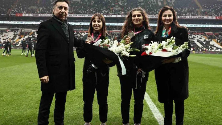 Beşiktaş'ın, Spor Toto Süper Lig'in 26. haftasında İstanbulspor ile oynadığı mücadele öncesinde, Avrupa 23 Yaş Altı Güreş Şampiyonası'nda madalya kazanan siyahlı-beyazlı güreşçiler Nesrin Baş ve Ebru Dağbaşı'na, Beşiktaş Yönetim Kurulu üyesi Seyit Ateş ve Genel Sekreter Mehtap Ferah, çiçek takdim etti. Milli sporculara, siyah-beyazlı taraftarlar, alkış ve tezahüratlar ile sevgi gösterisinde bulundu.