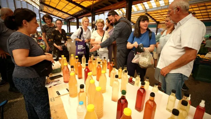 Konak Üretici Pazarı'nı gezen forum katılımcıları, üretilen ve satılan ürünlerle ilgili bilgi aldı. Küçük üreticiler ve aile işletmelerinin temsilcileri ile konuşan konuklar, üretim süreçlerini sorgulayıp, telefonları ile ilgilerini çeken ürünleri fotoğrafladı. Gıda ürünlerinin tadına bakan konuklar, üreticilerin ikramlarının yanı sıra alışveriş de yaptı.