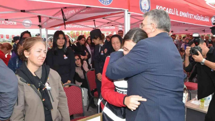 Kocaeli'nde geçirdiği kalp krizi sonucu yaşamını yitiren polis memuru Ahmet Yasin Demirkıran için İl Emniyet Müdürlüğü bahçesinde tören düzenlendi. Törende babasının polis yeleğini giyen genç kızı İl Emniyet Müdürü Veysel Tipioğlu teselli etti.