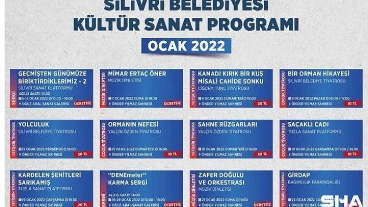 Silivri Belediyesi tarafından her ay düzenlenen kültür ve sanat etkinlikleri kapsamında Ocak ayında da sergiler, müzik dinletileri, sahne gösterileri, yetişkin ve çocuk tiyatroları sanatseverlerle buluşuyor.