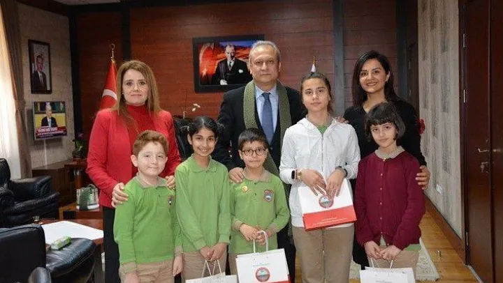 'Sıfır Atık' projesi kapsamında atık materyallerden atkı, magnet, kitap ayracı, bileklik, anahtarlık, kolye vb. eşyalar yaparak farkındalık oluşturan Selimpaşa Yavuz Selim İlkokulu 2, 3, 4. sınıf öğrencileri, Silivri Kaymakamı Ali Partal'ı makamında ziyaret ederek proje kapsamında ördükleri atkıyı hediye etti.
