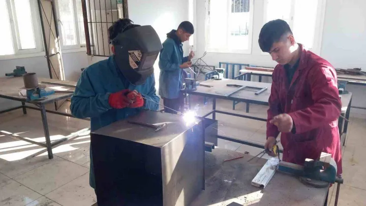 Okul atölyesinde depremzedeler için soba üretiyorlar