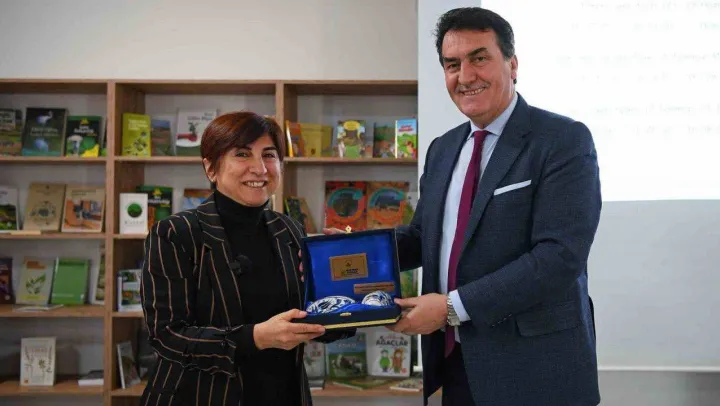 Program sonunda Osmangazi Belediye Başkanı Mustafa Dündar, incir yetiştiriciliğinin tüm inceliklerini aktaran Prof. Dr. Ümran Ertürk'e teşekkür hediyesi takdim etti.