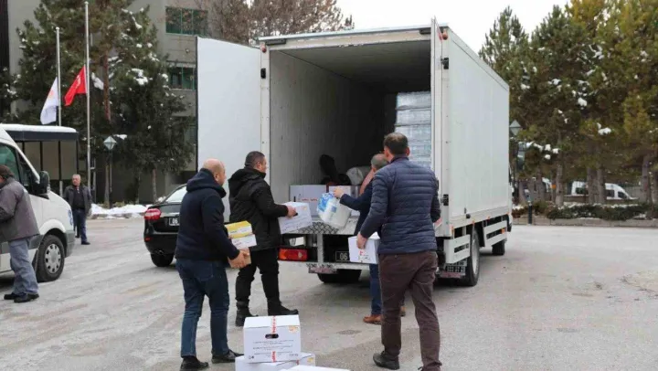 ÖSYM'nin hazırladığı yardım malzemeleri, Kahramanmaraş merkezli depremlerden etkilenen 10 ile gönderilmek üzere yola çıktı.