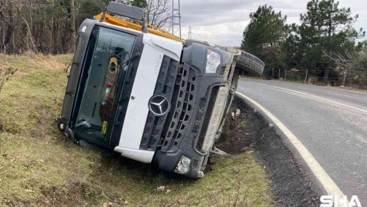 Olay, dün 11.00 sıralarında Sarıyer Kısırkaya Mahallesi'nde meydana geldi. Edinilen bilgiye göre yakınlarda bulunan bir inşaat alanında görevli hafriyat kamyonu malzemelerini aldıktan sonra yola çıktı. Dar ve zikzaklı yolda giden kamyon karşıdan gelen otomobilin hatalı sollaması nedeniyle bir anda manevra yaparak yola devrildi. Şans eseri kazada kimse yaralanmadı. Kamyonet sürücüsü Rıdvan Dere, 'Araba sollayınca ben de arabayı kaptırdım buraya lastiğin tekini, dönüşe verdim sola doğru arabayı aldım aşağıya sağa. Bende çok şükür bir şey yok arabada zarar var lastikler gitti hep' dedi.