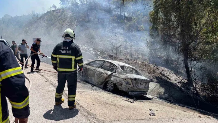 Çanakkale'nin Biga ilçesinde seyir halindeki otomobil, yol kenarındaki istinat duvarına çarptı. Kazada araç içinde sıkışan baba yanarak hayatını kaybetti.