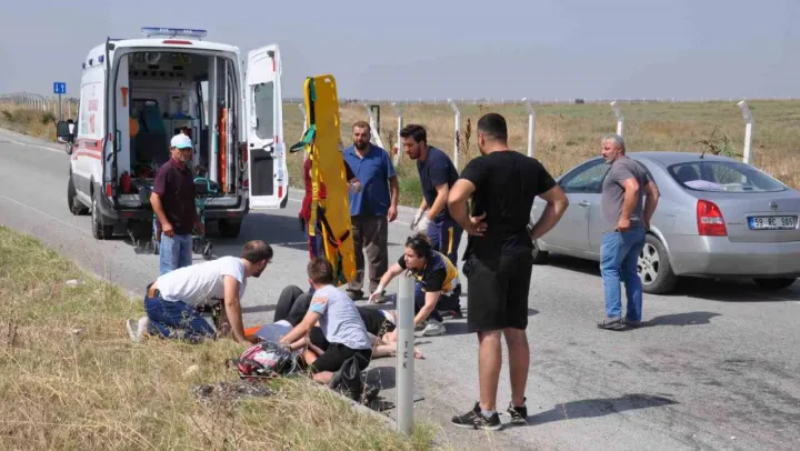 Tekirdağ'da otomobilin motosiklete çarptığı kazada motosiklette bulunan iki kişi ağır yaralandı.