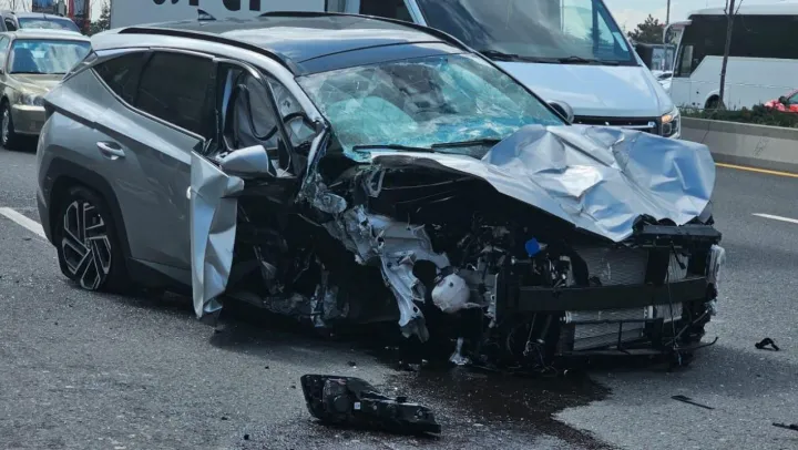 Otomobil, üst geçit ayağına çarptı: 2 yaralı