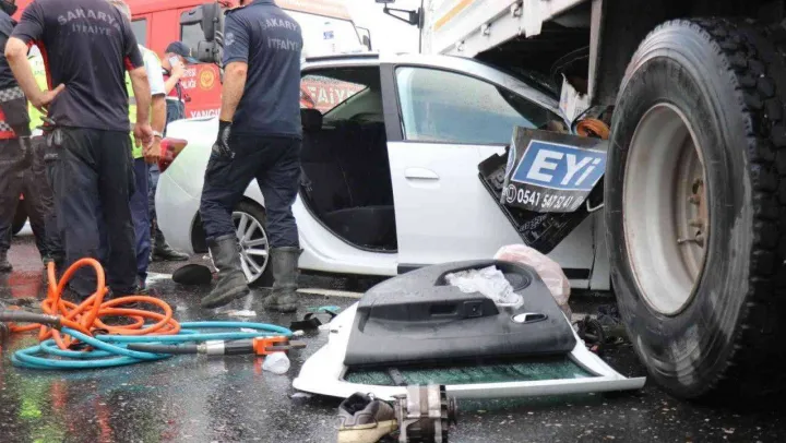 Otomobil, yan dönen kamyona ok gibi saplandı: 1 ölü 4 yaralı