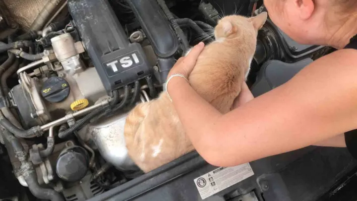 Otomobilin motor kısmına giren kedisini çıkarmak için saatlerce gözyaşlarıyla dil döktü