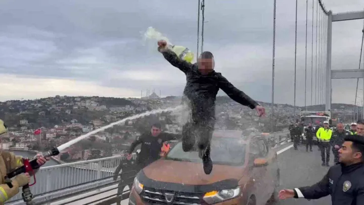 15 Temmuz Şehitler Köprüsünde Anadolu Yakasından Avrupa Yakasına geçiş istikametinde ilerleyen bir otomobil sürücüsü, köprünün ortasında otomobilini durdurup tavanına çıktı. Şahıs elinde bulunan şişe içerisindeki benzin benzeri maddeyi kendi üzerine ve otomobilin üzerine döktü. Olay yerine polis, itfaiye ve sağlık ekipleri sevk edildi. Polis, otomobil üzerindeki şahsı ikna etmek için çaba sarf etse de şahıs elindeki şişeyi bırakıp aracın üzerinden inmeye ikna olmadı.