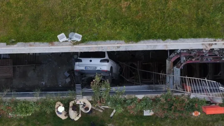 İstanbul Bahçelievler'de otoparktan çıkan kadın sürücü direksiyon hakimiyetini kaybederek çok sayıda araca çarptı. Demir korkulukları aşan otomobil boşluğa düştü. Sıkışan sürücü itfaiye yardımıyla kurtulurken, yapılan çalışmalar havadan görüntülendi.