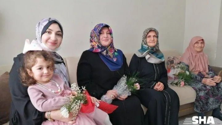 Eyüpsultanlı aile, Anneler Günü'nü beş kuşak birlikte kutladı. En küçük bireyi 2,5 en büyüğü ise 103 yaşında olan aile, Anneler Günü dolayısıyla bir araya geldi. 2,5 yaşındaki Miray Tuman, annesi 27 yaşındaki Merve Tuman'a, Tuman 47 yaşındaki annesi Melek Türksever'e, Türksever 67 yaşındaki annesi Gönül Öztürk'e ve Öztürk de 103 yaşındaki annesi Medine Demir'e çiçeğini vererek Anneler Günü'nü kutladı. Torununun torununu gören 103 yaşındaki Medine Demir'in Anneler Günü mutluluğu ise dikkat çekti. Aile, beş kuşağın birbirini görebilmesinden dolayı çok mutlu olduklarını ifade ederken, Medine Demir'in torununun torununun doktor olup kendisine bakacağı söylediği o anlar herkesi gülümsetti.