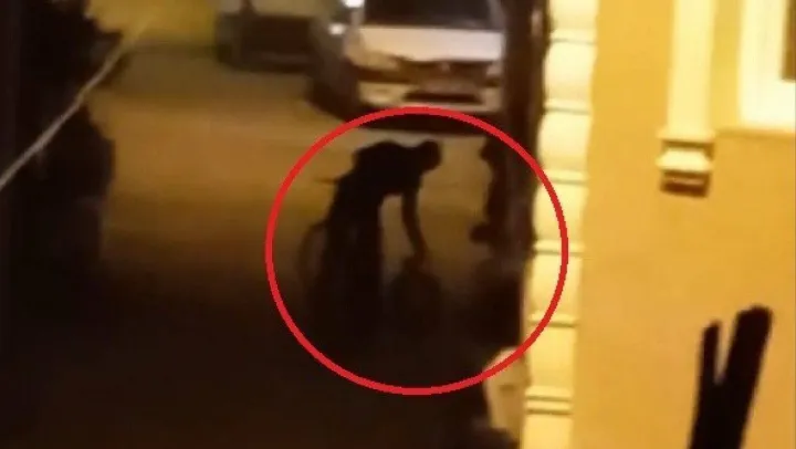 (Özel) Bisikletli yakıt hırsızları, tesadüfen uyanan vatandaşın bağırmasıyla böyle kaçtı