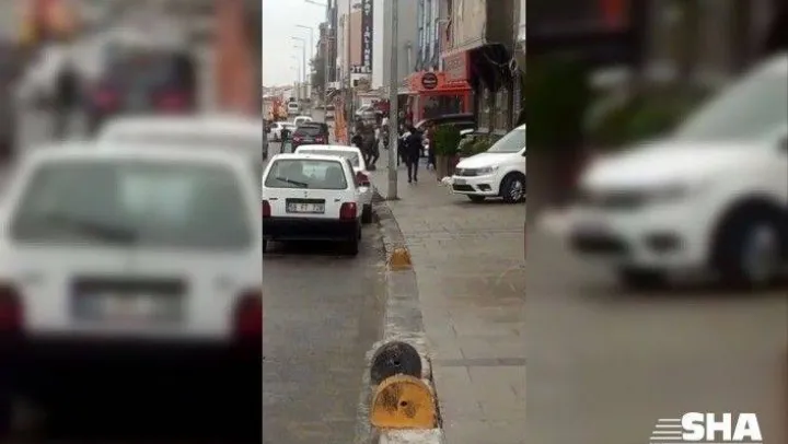 ARNAVUTKÖY'DE İKİ GRUP ARASINDA ÇIKAN BIÇAKLI VE SOPALI KAVGADA TEKME VE YUMRUKLAR HAVADA UÇUŞTU. BOKS RİNGİNİ ARATMAYAN KAVGADA BİR KİŞİ YEDİĞİ YUMRUK DARBELERİYLE TRAFİKTE BEKLEYEN ARABALARIN ALTINA DÜŞERKEN, O ANLAR KAMERAYA YANSIDI.
