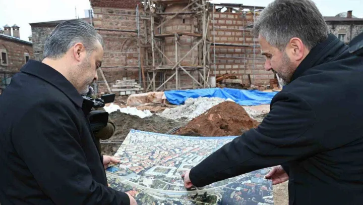 Çalışmaları kısaca özetleyen Aktaş, 'Tarihi ayağa kaldırıyoruz. Büyükşehir olarak 600 şantiyemiz var. Ancak en önemli ve bize heyecan veren çalışma burada yürütülüyor. 40 yıldır hayal edilen projeyi ayağa kaldırıyoruz. İlk etabını nisan ayında tamamını yıl sonunda bitirmeyi hedefliyoruz. Otopark çarşı ve bölge için önemli. Tarihi yapıdan dolayı ince eleyip sık dokuyoruz. Kuyu temelli bir inşaat yürütüyoruz. 73 kuyudan 60 tanesi açıldı. 17 metre aşağıya inen perdeler var. Şubat ayı sonunda perdelerin tamamı bitecek. Kazıya gireceğiz. Otopark için 14 bin metrekare inşaat alanı olacak. Bakırcılar Çarşısı Meydanı ve İpek Han Meydanı'nın alt yapı ve zemin tesviye çalışmalarına başladık. Nisan ayı sonuna kadar bitirmeyi planlanıyoruz. Yıllardır yok kabul edilen veya bir şekilde ortaya çıkarılamayan etrafında kamulaştırılmadan dolayı kaynaklanan sıkıntılardan dolayı çok önemi bir zatın medfun olduğu türbesi ve camisi ile çok önemli bir alan daha var. Sarıca Sungur Camisi'nin ve Mehmet Efendi Türbesi'nin ilk kayıtları 1549 yılına dayanmaktadır. Bir kaynağa göre Sarıca Sungur Mescidi'ni Hoca Sungur yaptırmıştır. İlk yapıldığı zamanlar kubbeli ve minareli olduğu anlaşılan cami sonraki zamanlarda onarım görmüş, 1678 yılı kayıtlarında Şeyhülislam Esiri Mehmed Efendi tarafından vakfedildiği ve onarımı yapılarak kiremit çatılı ve minaresiz formuna ulaştığı anlaşılmaktadır. 1681'de vefat eden Mehmet Efendi caminin kuzeyinde yaptırılan türbede defnedilmiştir. Türbede Şeyhülislam Mehmed Efendi'den başka annesi Fatma hanım ve kardeşi Ali Efendi'nin mezarları bulunmaktadır. Türbenin ve caminin kuzeyinde hazire alanı da bulunmaktadır. 1958 yangınına kadar mescid fonksiyonunu sürdüren camı yangın sonrası dükkana dönüşmüş ve Esiri Mehmed Efendi Türbesi de Esir Dede Türbesi olarak isim değiştirmiştir' ifadelerini kullandı.