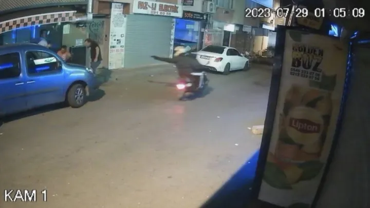 Çağlayan'da arkadaşlarıyla sohbet eden bir kişi, motosikletli ve kasklı şahısların silahlı saldırısına uğradı. Silahlı saldırı kameralara anbean yansırken, yaralı adam motosikletle hastaneye götürüldü. Saldırıda iş yerinin camı da tuzla buz oldu.