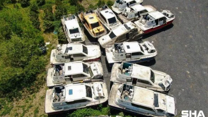 İstanbul'da bir dönem deniz ulaşımını rahatlamak amacıyla kullanılan deniz taksiler, yediemin otoparkında çürümeye terk edildi. Kullanılamaz haldeki 13 deniz taksi havadan görüntülendi.