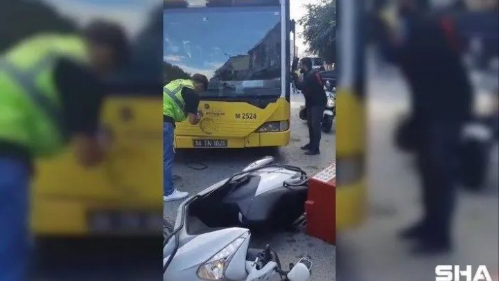 Esenyurt'ta bir motokurye, motosikletine İETT otobüsünün çarpması ile deliye döndü. Arkadaşını da çağıran motokurye, otobüsü tekmeleyip şoföre küfür etti. Yaşanan o anlar ise çevredeki bir vatandaşın cep telefonu kamerasına yansıdı.