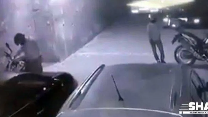 Çakmak Mahallesi'nde motosikletli 2 şahıs, bir apartmanın otoparkında duran motosikleti çaldı. Hırsızlardan biri kendi motosikletlerinde beklerken, diğeri park halindeki motosikleti çaldı. Hırsızlar ardından iki motosikletle beraber otoparktan kaçtılar. Otoparkta yaşanan motosiklet hırsızlığı güvenlik kameralarına yansıdı.