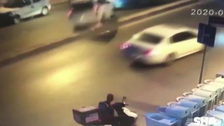 Öte yandan, kaza anı bir iş yerinin güvenlik kameralarına saniye saniye yansıdı. Görüntülerde trafikte hızlı ilerleyen hafif ticari araç önünde olan otomobilin yavaşlaması sonucu çarpmamak için manevra yapıldıktan sonra refüjü aşarak karşı şeride geçiyor. Araç, karşı şeritten gelen bir araca çarptıktan sonra park halinde olan başka bir araca çarparak duruyor.