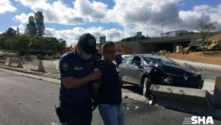 BETON BARİYERLERE ÇARPARAK KAZA YAPAN ŞÜPHELİ, YAKALANARAK GÖZALTINA ALINDI