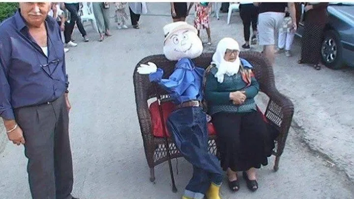 6 yıl önce eşini kaybeden yaşlı kadın, ölen kocasının kuklasını yaptı. Sağlığında beraber düğün konvoylarının önlerini kesen yaşlı kadın, şimdilerde aynı şeyi yaptığı kukla ile yapıyor.