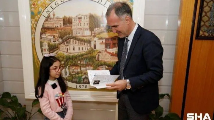 Bursa'nın İnegöl ilçesinde, pandemi sürecinde okulundan ayrı kalan Hacer Salih Yıldız İlkokulu 3'üncü sınıf öğrencisi Fatma Dilruba Karataş, okul özlemini hayalleriyle süsleyip kitap yazmaya başladı. Türkiye'nin en küçük yazarlarından biri olan Fatma Dilruba Karataş'ı İnegöl Belediye Başkanı Alper Taban makamında kabul ederek 'Bıy Ailesi' isimli kitabı için gereken desteği vereceklerini söyledi.