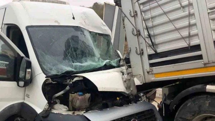 Bilecik'te seyir halinde bulunan bir minibüs, park halindeki tırın dorsesine çarptı. Kazada yaralanan ve araç içinde sıkışan sürücü itfaiye ekipleri tarafından kurtardı.
