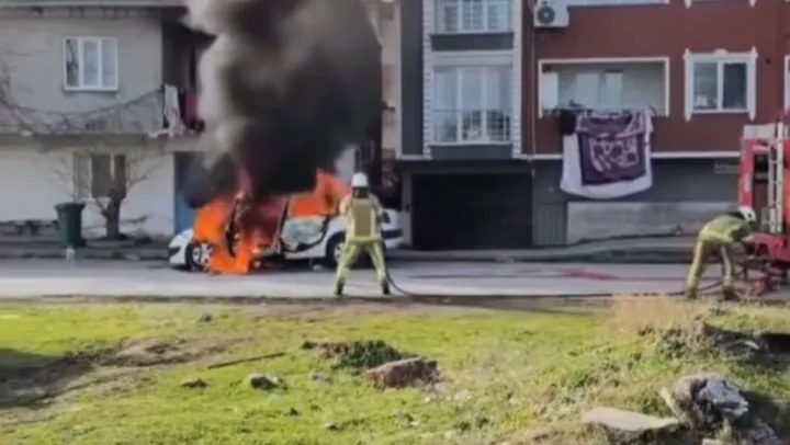Osmangazi ilçesine bağlı Panayır mahallesinde park halindeki otomobil aniden anda alev aldı. Kısa sürede büyüyen alevler aracı sararken, yangını görenler 112 ekiplerine bilgi verdi. İhbar üzerine olay yerine sevk edilen itfaiye ekiplerince alevlere müdahale edilirken, aracın motor kısmında gelen patlama nedeniyle panik yaşandı. O anlar amatör kameraya yansıdı. İtfaiye ekiplerince yangın kısa sürede söndürülürken, araç kullanılamaz hale geldi. Olayla ilgili tahkikat başlatıldı.