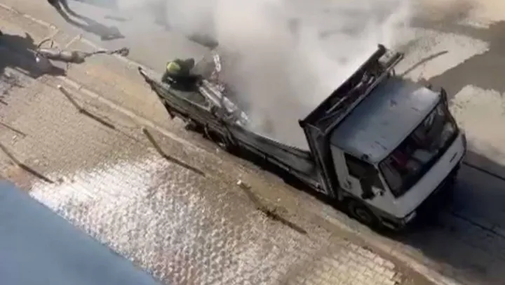 Bursa'da park halindeki bir kamyonetin dorse kısmında çıkan yangın korku dolu anlar yaşattı. Alev alev yanan kamyonet kameralara yansırken, yangın itfaiye ekiplerince söndürüldü.