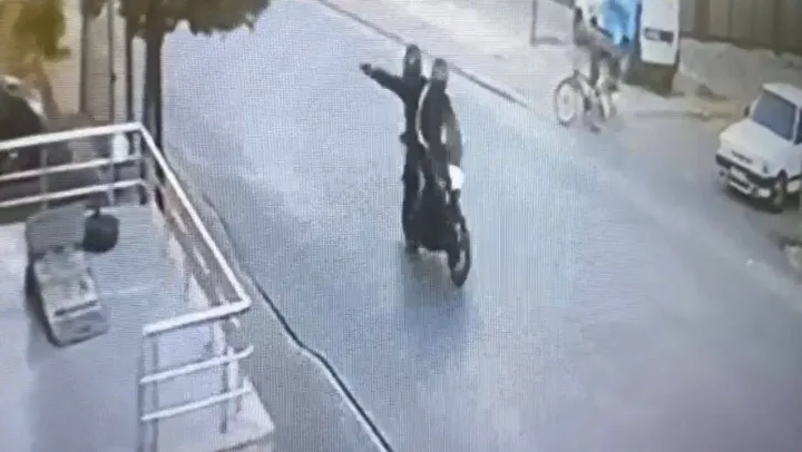 Öte yandan, saldırı anı iş yerinin güvenlik kamerasına yansıdı. Görüntülerde, kasklı iki saldırgandan birinin otomobillere doğru ateş açtığı ve kaçtığı anlar yer aldı.