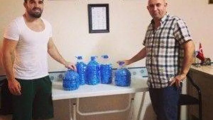 Karabulut, 5 litrelik bidonlara doldurduğu mavi kapakları Muhtar Alçi'ya teslim etti.Alçi, 'Pehlivan olmak ayrı, yiğit olmak ayrı. İsmet kardeşim toparlamış getirmiş helal olsun' diyerek Karabulut'a teşekkürlerini iletti. Başarılı güreşçi ise 'Çorbada tuz tanesi olabilirsek ne mutlu bize' şeklinde konuşarak desteklerinin devam edeceğini söyledi.