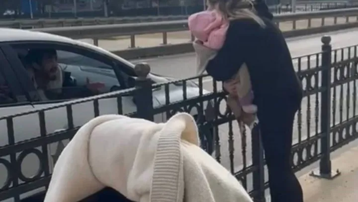 Pendik'te aralarında şiddetli geçimsizlik olduğu iddia edilen çift arasında kavga çıktı. Erkek şahıs eşinin kucağında bulunan ikizlerden birini tutarak araca çekti. Çocuğunu almak isteyen genç kadın aracın hareket etmesiyle yerde sürüklendi. O anlar vatandaşı cep telefonu kamerasına yansıdı.