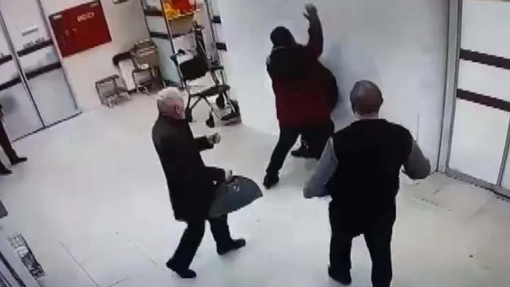 Öte yandan olay anı hastanenin güvenlik kamerasına yansıdı. Görüntülerde iki şahıs ile güvenlik görevlisi arasında arbede çıktığı, şahısların güvenlikçiyi darbettiği, kadın bir güvenlikçinin araya girerek olayı önlemeye çalıştığı görülüyor.