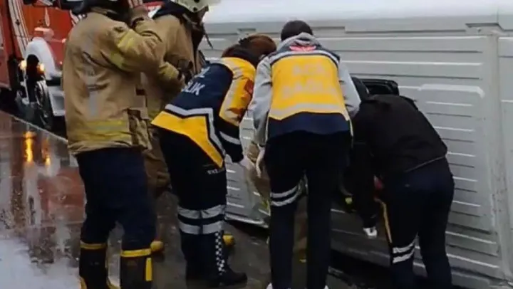 Pendik'te kaygan zeminde şoför direksiyon hakimiyetini kaybetti. Servis minibüsü devrildi. Kazada minibüs şoförü yaralandı.