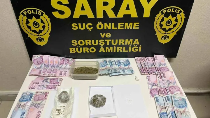 Uyuşturucu ticaretinin önlenmesine yönelik Saray İlçe Emniyet Müdürlüğü Asayiş Büro ekiplerinin gerçekleştirdiği çalışmalar sonucu F.Ö. isimli zanlının uyuşturucu sattığı bilgisi edinildi. Olayın ardından şüphelinin evinde yapılan aramada 18.7 gram bonzai olduğu değerlendirilen uyuşturucu madde ve uyuşturucu madde ticaretinden elde edildiği değerlendirilen 3 bin 600 lira ele geçirildi.