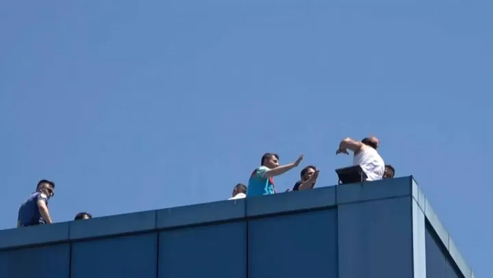 Kocaeli'de İzmit Kaymakamlığının çatısına çıkarak intihara kalkışan kişi, polis tarafından düşmekten son anda kurtarıldı. O anlar saniye saniye kaydedilirken, vatandaşlar ise olup biteni meraklı gözlerle izledi.