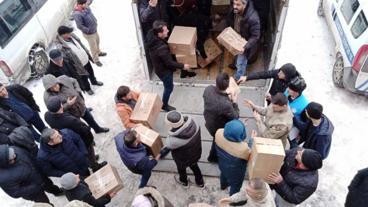 Gıda malzemesi ile giysilerden oluşan yardımlar görevliler eşliğinde vatandaşların yardımıyla kamyonlara yüklendi. 4 kamyon yardım malzemesi Ardahan'a gönderilirken yardımların devam ettiği belirtildi.