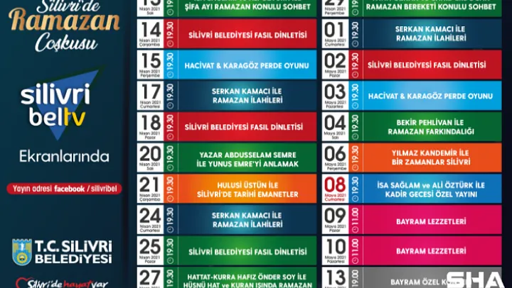Raman ayı boyunca Silivri Beltv ekranlarında yer alacak yayın akışı şu şekilde;