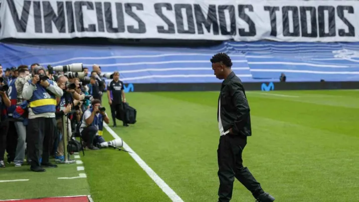 İspanya La Liga'nın 35. haftasında Valencia'nın, Real Madrid'i konuk ettiği karşılaşmada ev sahip ekip taraftarlarının bir kısmı, Madrid ekibinin yıldız futbolcusu Vinicius Jr'a ırkçı tezahüratlarda bulunması sonrası Brezilyalı futbolcuya destek verilmeye devam ediliyor. FIFA dahil tüm futbol camiasının tepkisini çeken bu olay sonrası Real Madrid, farklı branşlarda oynanan maçlar öncesi ısınmaya Brezilyalı futbolcuya destek olunması amacıyla Vinicius Jr.'ın adı ve numarasının yazılı olan formayla çıkarak, destek verdi.