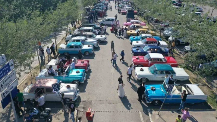 Roman çiftler klasik araçlarla İzmit sokaklarında düğün konvoyu coşkusu yaşadı