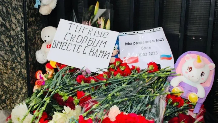 Türkiye'de merkez üssü Kahramanmaraş'ın Pazarcık ilçesi olan ve birçok ili etkisi altına alan 7,7 ve 7,6 büyüklüğündeki depremlerin ardından dünyadan destek gelmeye devam ediyor. Rus halkı, Moskova'daki Türk Büyükelçiliği önüne gelerek depremde hayatını kaybedenler için karanfil bıraktı.