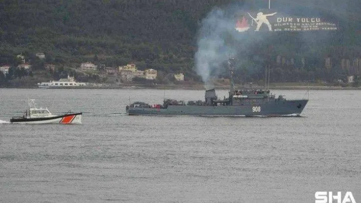 Rus Donanması'na bağlı 'MB-304' borda numaralı askeri römorkörü ile 908 borda numaralı 'Vitse Admiral Zakharin' mayın tarama gemisi Çanakkale Boğazı'ndan geçerek, Marmara Denizi'ne doğru yol aldı.