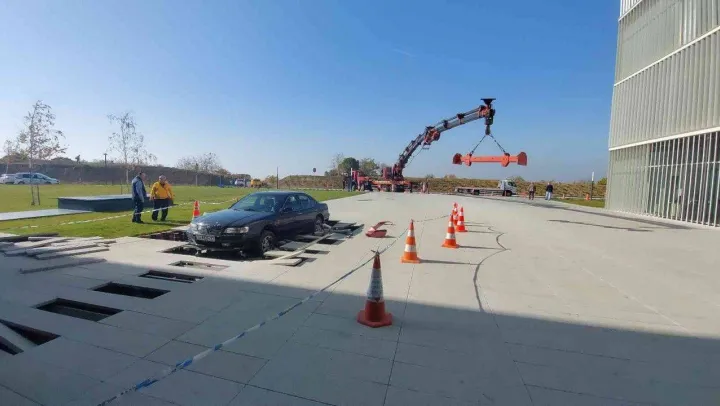 Olay, Tekirdağ Büyükşehir Belediyesi binasında meydana geldi. Edinilen bilgiye göre dün gece Büyükşehir Belediyesi binasına giden bir vatandaş arabasıyla yol zannettiği belediye avlusuna girdi. Bir süre ilerleyen otomobil bir anda zemine çökerek mahsur kaldı.