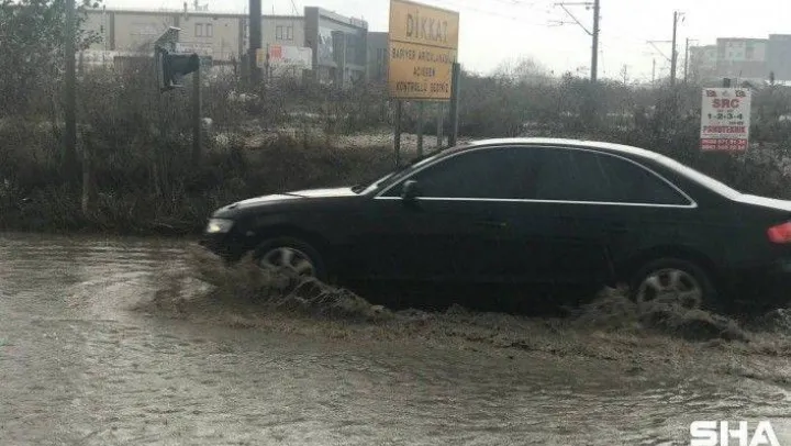 Sağanak yağmur sonrası yollar göle döndü