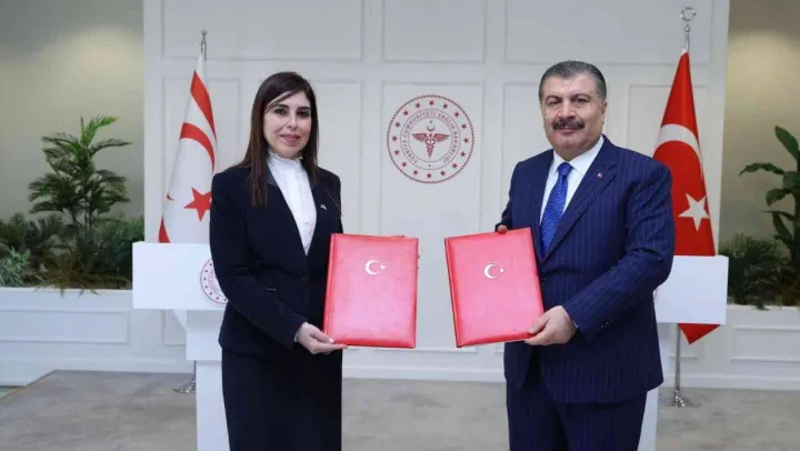 Sağlık Bakanı Koca: 'KKTC Sağlık Bakanı Sayın Altuğra ile dün Sağlık Alanında İş Birliği Anlaşmasını imzaladık. Bu anlaşma ile, çifte uyruklu gençlerimiz, tıp fakültesinden pratisyen hekim olarak mezun olduktan sonra mecburi hizmetlerini aynı zamanda KKTC'de de hayata geçirebilecekler. Hayırlı olsun.'