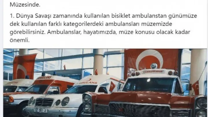 Sağlık Bakanı Fahrettin Koca, Bursa İnegöl Devlet Hastanesi'nde bulunan Ambulans Müzesi'ni paylaşarak; 'Ambulanslar, hayatımızda, müze konusu olacak kadar önemli.' ifadelerini kullandı.