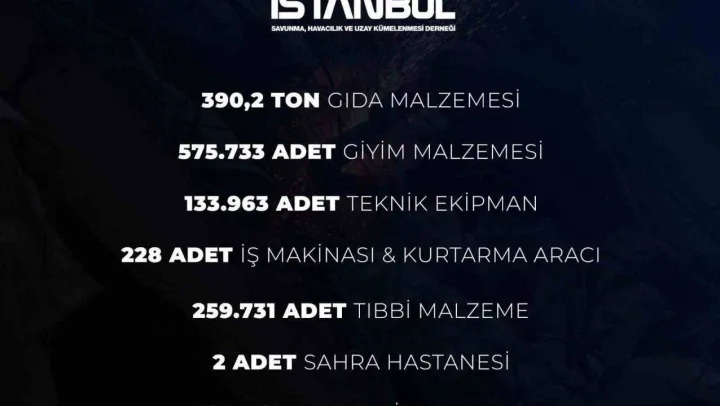Kahramanmaraş merkezli iki büyük depremin vurduğu şehirlerde arama-kurtarma çalışmaları sürerken, Türkiye'nin dört bir yanından afet bölgesine yardımlar da gitmeye devam ediyor. Türkiye'nin ve Avrupa'nın en büyük savunma-havacılık sanayii kümelenmesi olan 'SAHA İstanbul' da bünyesinde bulunan firmalarla koordine olarak deprem bölgesinin ihtiyaçlarını karşılamaya yönelik girişimlerde bulundu. SAHA İstanbul; depremin ilk gününden bu yana 390,2 ton gıda malzemesi, 575 bin 733 giyim, 228 adet iş makinesi, 259 bin 731 tıbbi malzeme, 2 adet sahra hastanesi, 404 ton muhtelif malzeme ve 833 milyon 608 bin 736 TL nakdi yardım sağladı.